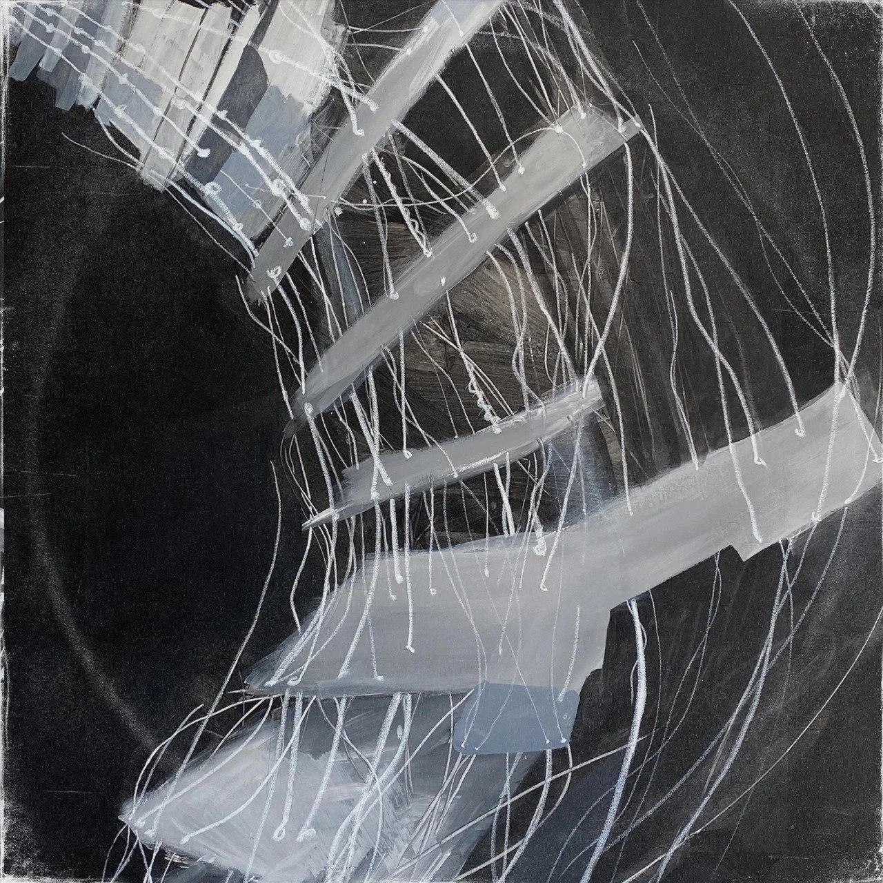 A big part of my process involves sound, as most of my art comes from words on paper, many of my paintings, and ceramics have music. The 2020 lockdowns allowed me time to start thinking about specifically creating ambient, and cinematic soundscapes as starting points for paintings, ceramics, and screen-printed works. The artwork for each track comes directly from listening to each soundscape.